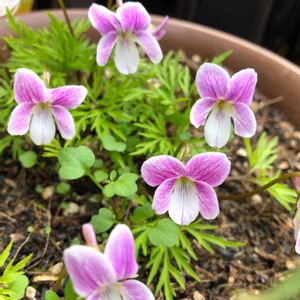 💗💗ヒゴスミレ💗💗 我が家に来て3年目💗今年も可憐に咲いてくれました🥰 エイザンスミレと似てるけど、 ヒゴスミレの葉の方がもっと細裂しています。
