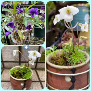 スミレ お隣さんが左上の我が家のスミレを可愛いと褒めてくださったので、小さな鉢のを差し上げました💜 そしたら、お返しにと白いスミレをいただきました🤍しかも可愛い鉢ごと💕 うふふ😊得しちゃった(๑・̑◡・̑๑)✨ うちの💜は凄い勢いで増えてて…お隣さんの🤍も同じく増えてるそうです😁 その内2軒ともスミレだらけになるかもね〜🤣 追記✨PHVさんから白いスミレはヒゴスミレと教えて頂きました🤍ありがとうございます😊💕