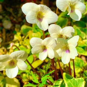 ヒゴスミレの小鉢💮 ちょっとたくさん咲きました。 冬場に葉が無くなったのでダメかなと思ってた鉢です。 やっぱり強いヒゴスミレ💖 室内夜間撮影なので 暗いですね。 ホントはもっと白い花🌞😅