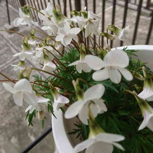 このスミレちゃんは道路のコンクリートの僅かな隙間から咲いてました🌼 しかも元気にこんなにたくさんのお花ちゃん! この直ぐ目の前にあるお宅のお婆さんが花好きなようで、家の前にはたくさんの鉢植えが並べてあるので、そちらからのこぼれ種からだと思うのですが🌱 すごーぃ生命力! この純白さ!✧︎ 元気を貰えました⤴ 今日も頑張りましょう٩(๑•̀ڡ•́๑)و