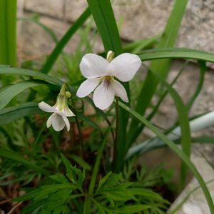 ヒゴスミレ一輪開花🤍 溢れ種からふた苗🌱 もっと増えますように🙏