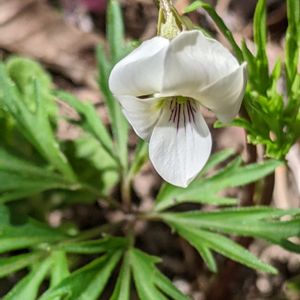 ヒゴスミレです。 自然大好き派😘、兼園芸もやっています派です。この花は今月の8日の葉っぱの日にアップしたものです。あれから10日経ち無事?に開花しました。スミレ属の中ではやはり葉っぱがすごいです。光合成を沢山するには葉っぱの面積が広い方が良いと思いますが、何でこんなに細いのか聞いてみたいです😊。ご存知の方がいらっしゃればお教え下さい。追記→水分条件の悪い所でも生き延びるためのようです。水分の蒸散を抑えるためみたいです。山で自生しているのを見ないといけませんね😅。