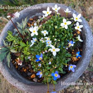 しとしとみぞれ混じりの雨です。 寄せ植え?というにはあまりも簡単なヒナソウと薄紅肥後すみれ。 小さな愛らしいお花たち