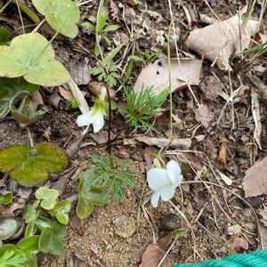白花の肥後スミレが初開花です💕 冬に枯れてしまったと思い心配しましたが、新芽🌱が出て安心しました。
