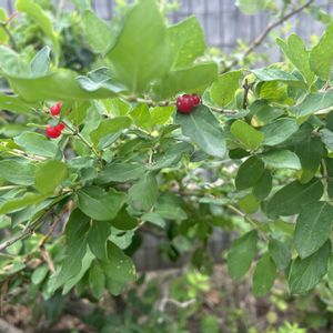 こんにちは🐰 今日は赤い実が生る木、二種類 ニワウメ(庭梅)バラ科スモモ属 ①〜③ 小さな赤い実が沢山生ってました。 甘酸っぱい味で、私の好み🤭😋 4月26日、綺麗な花が咲いていた実家の庭で😄 ④⑤ ヒョウタンボク キンポウゲ科 別名 キンギンボク 赤い実がビッシリ良く見ると、瓢箪の様な形でふたつの実がくっついてます。名前はこの形から付いたらしいです。 ひとつだけ花が咲いていました💕 河川敷の散歩で🚶 因みにこの実は有毒です⚠️ ポツポツ雨が〜でもこれじゃ駄目だわね😅 今日もお疲れ様です♪ 明日も穏やかな一日を^_−☆