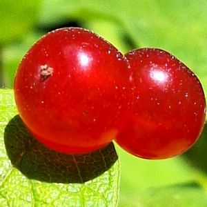 🔴強い日差しを浴びて より赤く透き通って見える 2つの実に見えるがこれで1つの実 ひょうたんの形に似ていて面白い 🔴「ヒョウタンボク」🔴Շ˝ན いかにも美味しそうに見えるけど食べてはいけない☠️液果は猛毒・・・ドクブツとかヨメコロシなどの別名がある なんとも恐ろしいお名前☠️