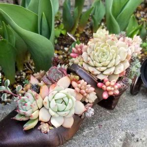 魅力的な寄せ植えですね。 目移りするほど沢山の多肉がある お宅です。