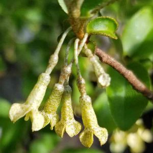 花は両性または単性、がくは黄色で筒状、先が4裂し、 雄蕊が4本つく。花弁はない。 サヤエンドウを撮しに来たら、ご主人がグミの花が咲いてるよ~と。 これは花ではないのですね。