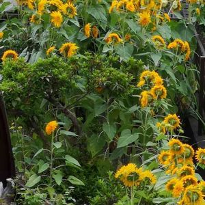 朝 窓を開けると 一番先に 目に飛び込んで来る ご近所さんのお庭の向日葵 みーんな向こう向いてるけど 起きたばかりで👓掛けてない私には こっち向いて おはようって言ってくれてるみたい🌻ご近所さん ありがとう~💞