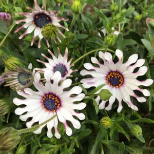 今年も咲きはじめました。オステオ スペルマム(スプーン咲き)。咲き始めは左上で、もっと開いたのが下の花です。もっともっと開くとマーガレットのようになります。 毎年、ご近所のこの花を見るのがとても楽しみです。