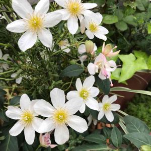 ご近所の玄関先に置いてあった寄せ植えの鉢には、知らない花ばかり植えられていました。 りりこさんがクレマチスカートマニージョーと教えてくれました🌸