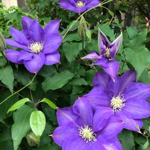 ご近所に華やかなクレマチスが咲いていました。蕾もたくさん付いています。楽しみだなぁ。