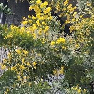 近所のミモザが咲き始めました! もうそんな季節なんですね🌼 2月だけど、すっかり春の気分。 ここのお宅のミモザは毎年見事な花を付けますが、剪定したみたいで枝が少なくなっていました。