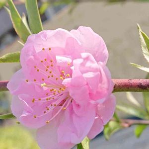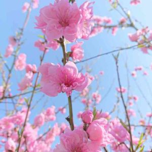桃ですかね。青空に映えます。