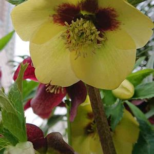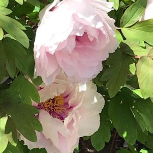 近所の庭先で、ひっそりと咲く華やかな牡丹。