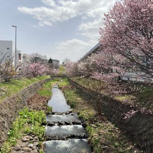札幌の寒地土木研究所の千島桜の並木です。 開花が例年より1週間早いです。 一般公開は4月23日まで。