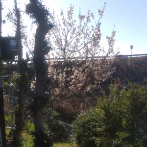 うちの畑の向かいに植えられてる?桜。 コレ、ソメイヨシノの筈だけど、もう咲いてた。いくらなんでも早すぎる気もする。