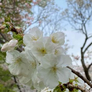 桜🌸ツボミはほんのりピンクの部分も見えるけれど、開くと白が美しい桜🌸