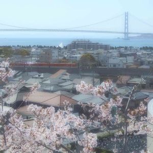 橋と電車と桜と。
