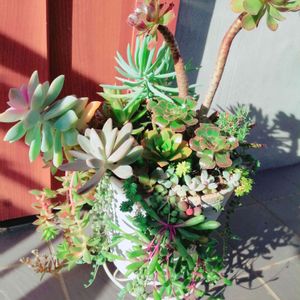 玄関のだいぶワイルドな寄せ植え😅 結構でかいです。 どこが正面かわからない。 たまに向きかえてます。 あちこち向いてる(笑)