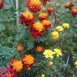 マリーゴールドには頭が下がります😊 何時も明るく 元気で、力強い子です🌟 コキアも 零れ種であちこちをルビー色に…秋の花壇🏵️🍃🍂