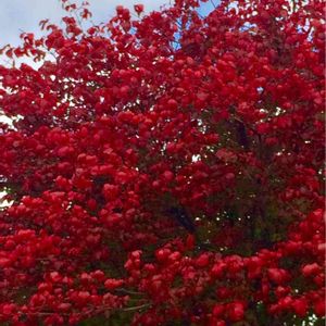 真っ赤っか さん(^^)❣️ もみじ🍁⁈ 違う💦 さくら🌸⁉︎ 違う💦 何の木でしょう⁇ くるりんっとカールした葉っぱがまぁるい花のようでした(๑˃̵ᴗ˂̵)❣️
