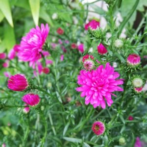 雨の火曜日 朝、少しの止み間 庭を覗くと 可愛い姿が彼方此方に ポッポッと咲き始めてます🌸 小さな蕾も沢山付いて 久しぶりのしっかり☔️の潤いに 生き生き 満開になるのが楽しみ🎶 クジャクアスター