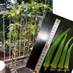うちのオクラ16cmなっても柔らかいんです。なので欲張ってちょっと大きめの収穫に❗