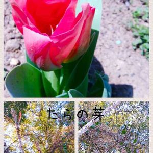 こんにちは(๑'ᴗ'๑)✨✨ 今日の畑からチューリップ🌷 ミカン山からタラの芽 です✨(タラの芽は背が高くて、背伸びして撮りましたが、いつものことながら見辛いショットですみません💦) プラス、ウグイスの練習したてのホーホケキョケキョ🎵💛この慣れない鳴き声がまた毎年可愛いくて和みます♡♡♡ 皆さま良い時間をお過ごしでありますように(´V`)♡♡