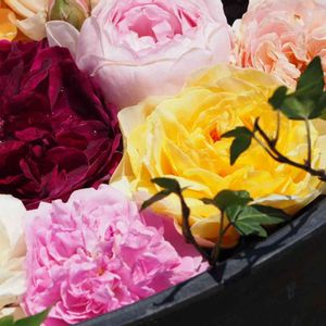 ローズフェスタにて。 睡蓮鉢いっぱいにカラフルなバラが浮かべてありました。グリーンのアイビーを添えて。