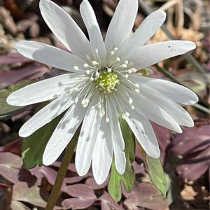 アズマイチゲ キンポウゲ科 イチリンソウ属 花弁に見える萼片が、少しピンクがかっていました。可愛く健気に咲いていました♡