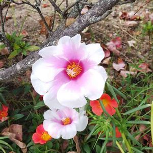 おはようございます☀️秋晴れ☀️が続いて気持ちいい季節‼️淡い色の松葉牡丹赤い中にあってひときわキレイ‼️ 私は女優よ‼️みたいな感じ…笑