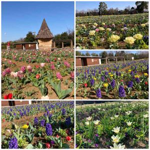 平塚市花菜ガーデンのチューリップが咲いてました🌷🌷🌷 チューリップ🌷とヒヤシンス、クロッカス、ラナンキュラス、スイセンが混じって咲いてます♪😍