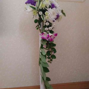 菊の花で和ブーケ💐作りました 家にある花材で作ったので 仕上がりいまいちかな(・・? ブーケ💐に菊はありかな? 本来トルコキキョウで作るところだけど、菊にしか出せない 綺麗な白と清楚感と気品さがあります(*´∇`*)