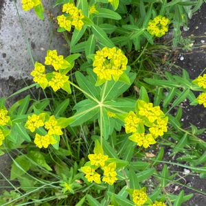 うどんチェーン店の駐車場の裂け目から咲いていて少し驚きました 5/21撮影 ※トウダイグサ科トウダイグサ属 本州から沖縄まで分布する 花期 4〜6月 花のように見える杯状花序をつけるのが特徴
