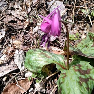 『カタクリ』 大阪府民の森 くろんど園地に、 水芭蕉と、 ラクウショウの森があります。 その隣りにカタクリが保護されている一画があります。 森はイノシシやらに荒らされ、花も減少傾向だそうです💦 今回は、 水芭蕉、ショウジョウバカマ、カタクリと、山登りしなければ見れない野草を、ミニハイキングで皆に出会え、最高☀️でした🎶😊😁