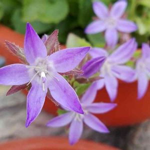 こんにちは 今年も咲きました! カンパニュラアルペンブルー´ω`)ノ 春先は小さなサイズだったのにもりもりになってきて、少し狭そうです…笑 これからもっと花が咲いてくると思いますが、ナメクジ対策をしっかりしないとですね…