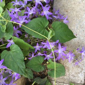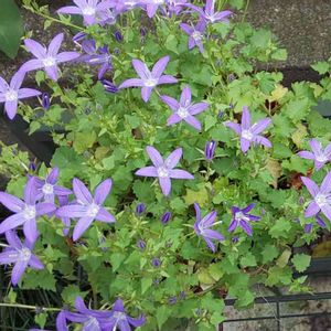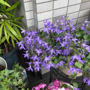 カンパニュラ アルペンブルー✿✿ ど根性アルペンブルーさんです。 種が飛んで玄関前で咲いています。 今年は一段とたくましく、大きく育っています。 サイズは約70×110cm❣️ 階段横のスロープなので、まだまだ陣地を広げていきそうです。