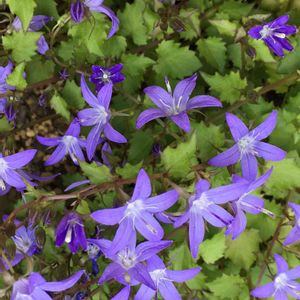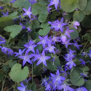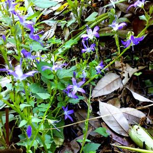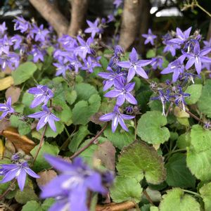 地下鉄駅敷地内の カンパニュラ・アルペンブルー 自然風に咲いてます。