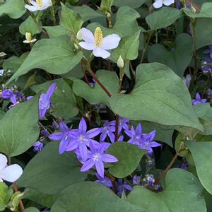 直径10㎜位の小さな花です。葉っぱも♠️形。