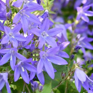 カンパニュラ・アルペンブルーは、ヨーロッパに分布する、キキョウ科ホタルブクロ属の多年草。和名は星桔梗。生協では、星咲き西洋ききょうとして販売されています。 花期は、3~9月。2~3センチの大きさの花がたくさん咲く様子は、地上に咲く夜空のようで、ロマンチックです。