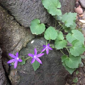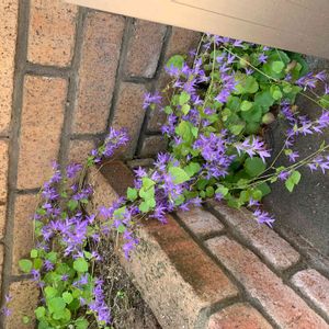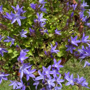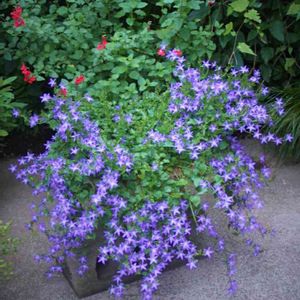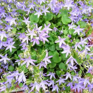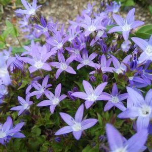 ご近所さんのイソトマ 訂正します。 カンパニュラアルペンブルーです。 小さな星形の花がいっぱい垂れ下がって咲いています。