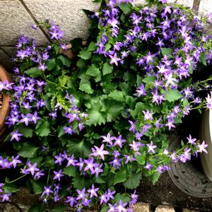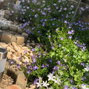 カンパニュラ アルペンブルーとアルペンホワイト 日陰でもモリモリ咲きます☺️