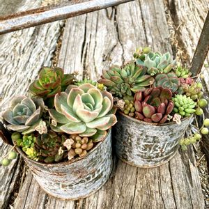 DAISO多肉で寄せ植え🤗 真ん中の3個がDAISO多肉名無しさんです 後は家にいる子をかきあつめて(*´꒳`*)✂️