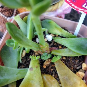 デンドラチェム💚 木立ちしたので喜んで切ったら😁✂️✨ 元気元気!!(右上) 葉挿し率もパーフェクト💯(花芽葉挿しも🙆♀️) 増やす気マンマンですが 紅葉させきらんのでした😅🤣笑 ◉アズキのデンドラチェム🏷あります⬇️