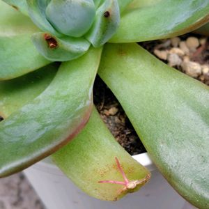 残暑に耐えきれず、日ごとにポロポロと葉が落ちたり消えていく多肉たち🥺。 もうお手上げ〜🤷って感じだったけど…。 半日陰の通路に移動して数日、よ〜く見てみると…🧐 ①デンドラチェム 本体はもう🕯️状態だけど…😅 ②だるま秋麗かな? 小さな🌱が出てきてる? ④🐕️σ(゚∀゚ )オレも、早く涼しくなってほしいワン😮💨。
