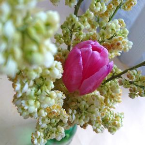 チューリップ🌷 先週のバレンタインに、会社から女性従業員にチューリップのプレゼントがありました(*^^*)🎶 毎年フラワーバレンタインでお花を頂けます🌼 1本はダメになってしまいましたがもう1本は1週間たった今も綺麗です✨ 一緒に生けたアオモジも満開でチューリップちょっと埋もれぎみ…😅