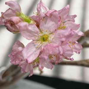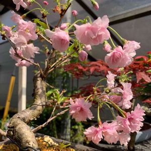 今年1月に買って来た桜が咲きました。 品種名はわかりません。 咲いてはじめて八重桜だった🌸 と気づいた💦