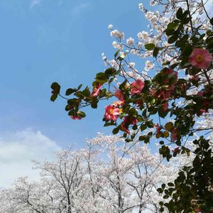 おはようございます😃 花桃と桜🌸のコラボレーション!