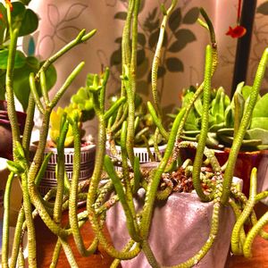 お疲れ様です🍵 今朝は寒すぎて目覚めました マイナス8℃(((;꒪ꈊ꒪;)))🧊 お外はカチコチです お部屋多肉ちゃんで唯一元気? なのか徒長なのか ニョロニョロ(~˘▾˘)~昇り龍 緑蛇🐍✨そのままの名前、 鱗がまたリアル 爬虫類ダメな方すみません🙏 エケベリアの豪華さもステキですが たまには面白い姿の多肉ちゃんも 楽しい( ॑꒳ ॑ )デスヨネ♡ ではでは(*>∀<)ノ))おやすみなさい💨